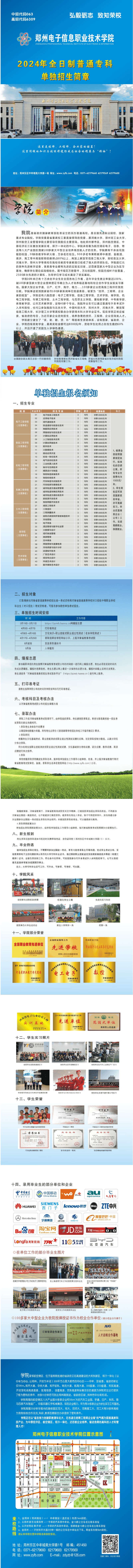 郑州电子信息职业技术学院2024年单独考试招生简章