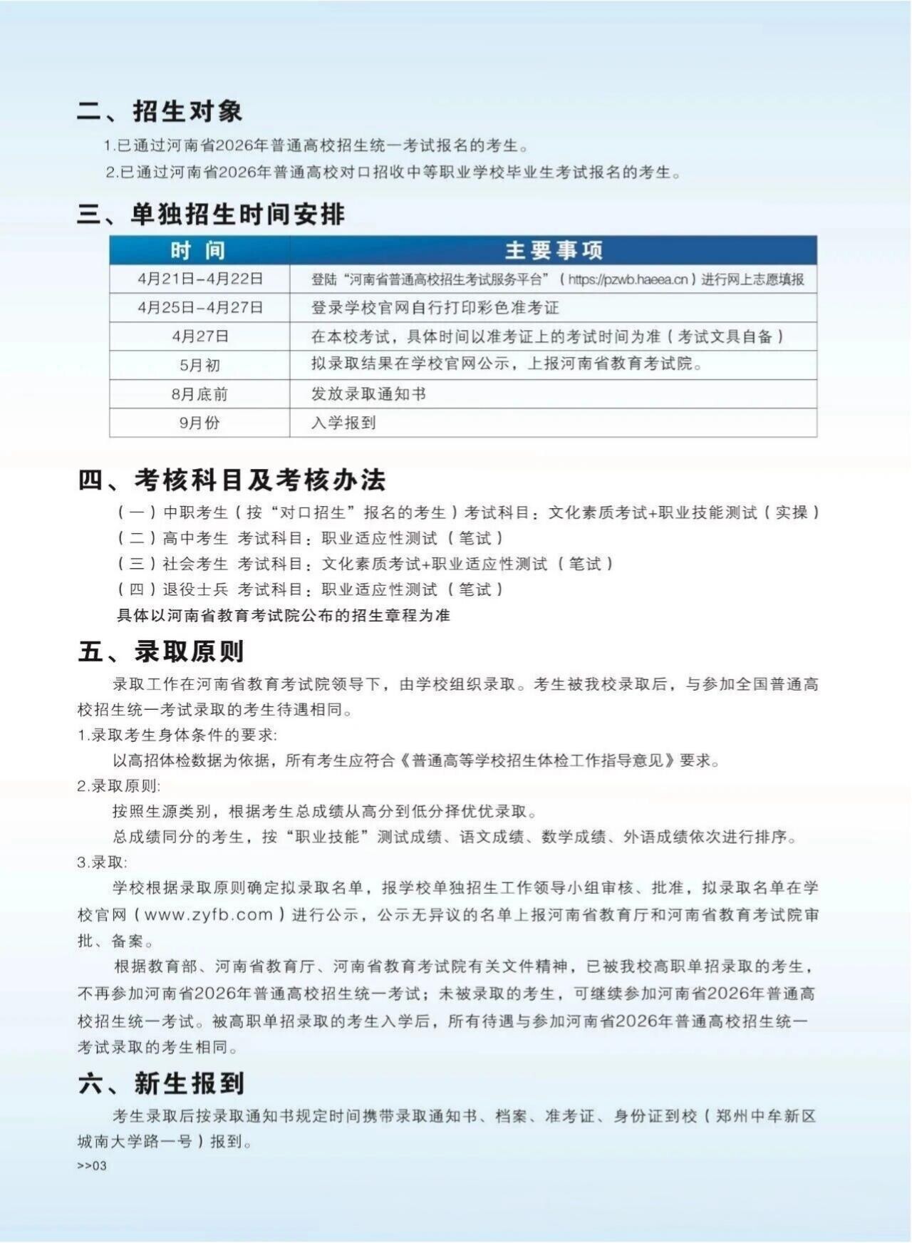 郑州电子信息职业技术学院2026年单招简章